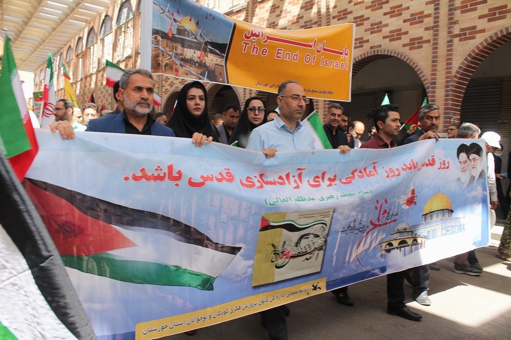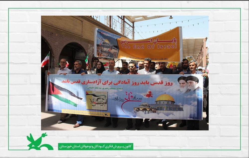 حضور کارکنان و مربیان کانون به همراه کودکان و نوجوانان خوزستانی در راهپیمایی روز قدس