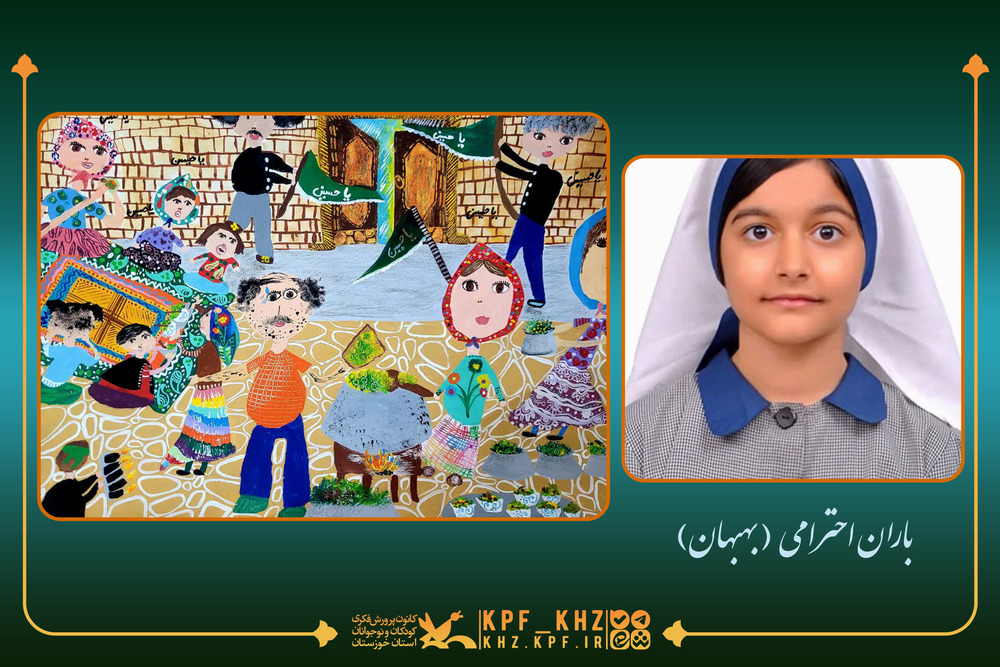 برهمین اساس، باران احترامی 11 ساله از مرکز بهبهان با مربیگری ناهید مهران فر با ارسال اثر خود که با مفاهیم؛ دورهمی خانواده در خانه ی مادربزرگ، حضور اقوام و بچه ها ، شب زنده داری برای امام حسین(ع) و پختن آش نذری عاشورا ( شور حسینی در خانواده های ایرانی و توجه به سنت و فرهنگ) تولید شده بود موفق به دریافت جایزه ویژه این مسابقه بینالمللی شد.