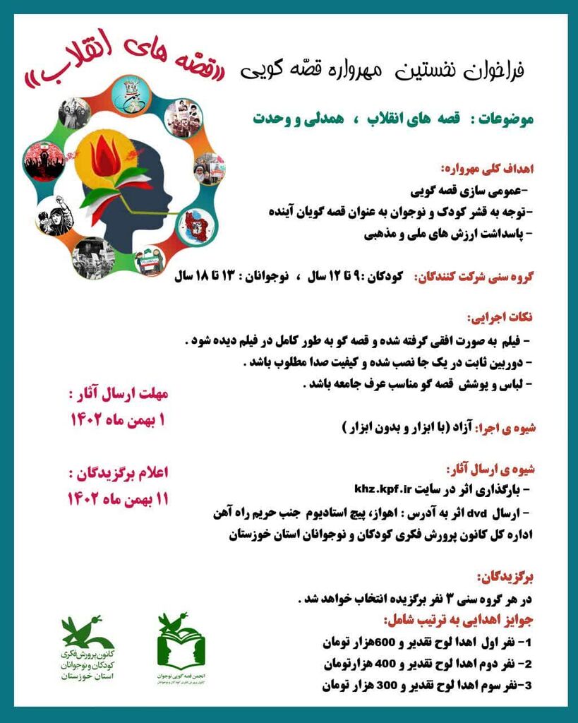 کانون پرورش فکری کودکان و نوجوانان خوزستان فراخوان نخستین مهرواره قصهگویی«قصّههای انقلاب» را منتشر کرد.